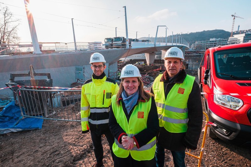 V současné době jsou z nepříznivých klimatických důvodů zastaveny práce na pokládce finálních vrstev probarveného (červeného) asfaltu na oba boční pochozí pásy mostu. Pro pokládku těchto asfaltů, která bude realizována v rámci března 2026, jsou připraveny podkladní plochy opatřené izolačními vrstvami, ve finální fázi je instalace atypických dílů mostního zábradlí. Most bude zprovozněn již v dubnu tohoto roku pro veřejnost a MHD.
